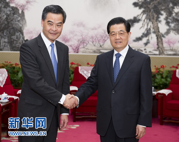 新華網(wǎng)北京12月21日電(記者李寒芳)國家主席胡錦濤21日下午在中南海會見了來京述職的香港特別行政區(qū)行政長官梁振英,聽取了他對香港當前形勢和特區(qū)政府工作情況的匯報。