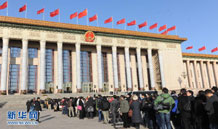 記者排隊(duì)等待進(jìn)入人民大會(huì)堂