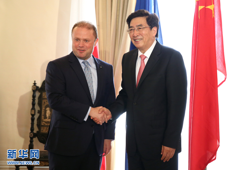??? 6月16日,在馬耳他首都瓦萊塔的總理府,郭金龍會(huì)見(jiàn)馬耳他總理穆斯卡特(左)。應(yīng)邀對(duì)馬耳他進(jìn)行友好訪問(wèn)的中共中央政治局委員、北京市委書(shū)記郭金龍16日在瓦萊塔分別會(huì)見(jiàn)馬耳他總統(tǒng)普雷卡和總理、工黨領(lǐng)袖穆斯卡特。 新華社記者李佳攝