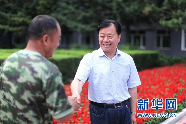 6月25日,顧百文和個(gè)體戶鐘祥成握手。 新華社記者 馬知遙 攝