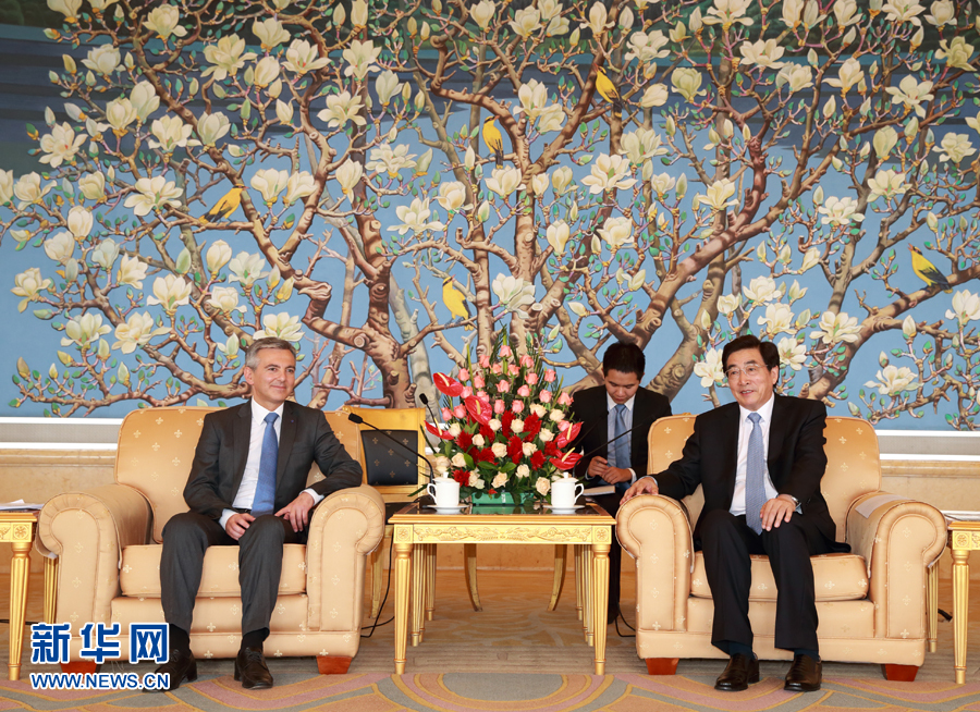 ??? 7月14日,中共中央政治局委員、北京市委書記郭金龍?jiān)诒本?huì)見(jiàn)馬耳他國(guó)民黨領(lǐng)袖布蘇蒂爾。 新華社記者 丁海濤 攝