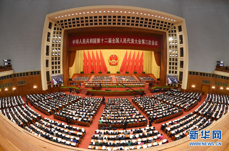 3月12日,十二屆全國人大三次會(huì)議在北京人民大會(huì)堂舉行第三次全體會(huì)議。 新華社記者 高潔 攝