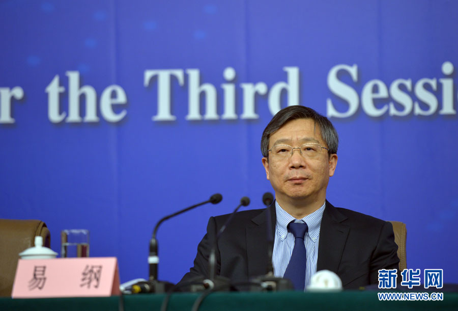 十二屆全國人大三次會議新聞中心于3月12日在梅地亞中心多功能廳舉行記者會,邀請中國人民銀行行長周小川,中國人民銀行副行長、國家外匯管理局局長易綱,中國人民銀行副行長潘功勝,絲路基金有限責任公司董事長金琦就金融改革與發(fā)展回答中外記者提問。圖為中國人民銀行副行長、國家外匯管理局局長易綱回答記者提問。新華網(wǎng)/中國政府網(wǎng) 郭小天 攝