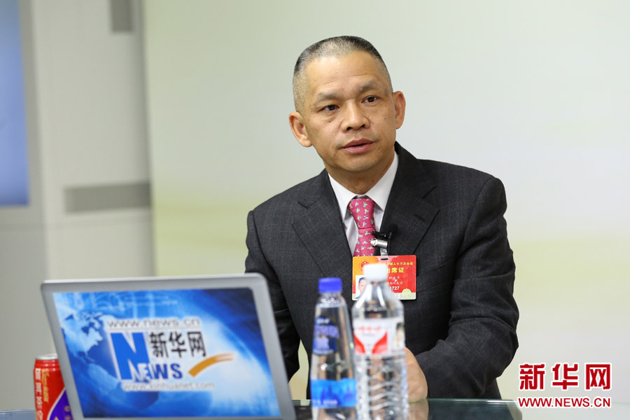 ????2015年3月13日,全國人大代表、湖南科力遠(yuǎn)新能源股份有限公司董事長鐘發(fā)平做客新華會客廳。新華網(wǎng) 李江 攝?
