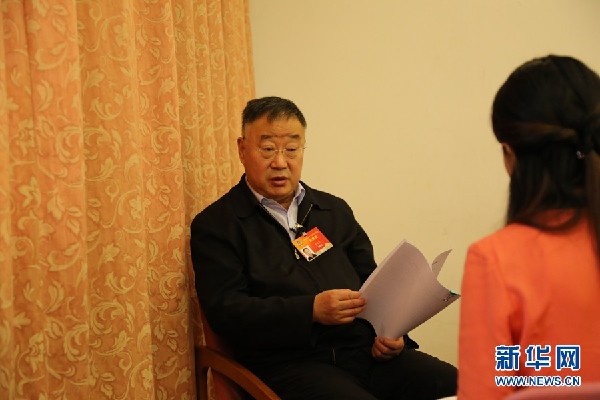 ????2015年3月15日,全國(guó)政協(xié)委員、中科院院士、氣象學(xué)會(huì)理事長(zhǎng)秦大河做客新華網(wǎng)2015全國(guó)兩會(huì)特別訪談。圖為秦大河在訪談現(xiàn)場(chǎng)。