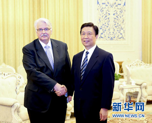 4月26日,國(guó)家副主席李源潮在北京會(huì)見(jiàn)波蘭外長(zhǎng)瓦什奇科夫斯基。 新華社記者 丁林 攝