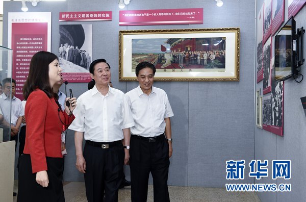 7月10日,中共中央政治局委員、中央書記處書記、中宣部部長劉奇葆在北京參觀“旗幟——馬克思主義中國化的光輝歷程”主題展覽。新華社記者 張領 攝
