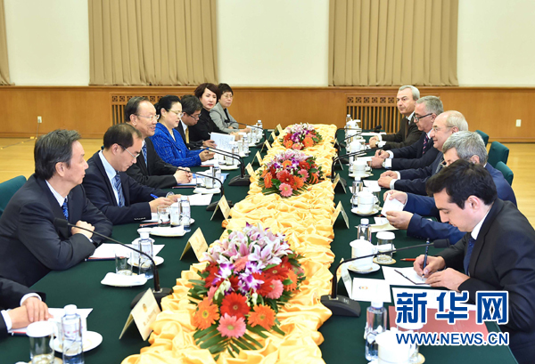 新華社北京11月3日電(記者王慧慧)中共中央書記處書記、全國(guó)政協(xié)副主席、中國(guó)經(jīng)濟(jì)社會(huì)理事會(huì)主席杜青林3日在北京與亞美尼亞公眾院主席馬努基揚(yáng)會(huì)談。