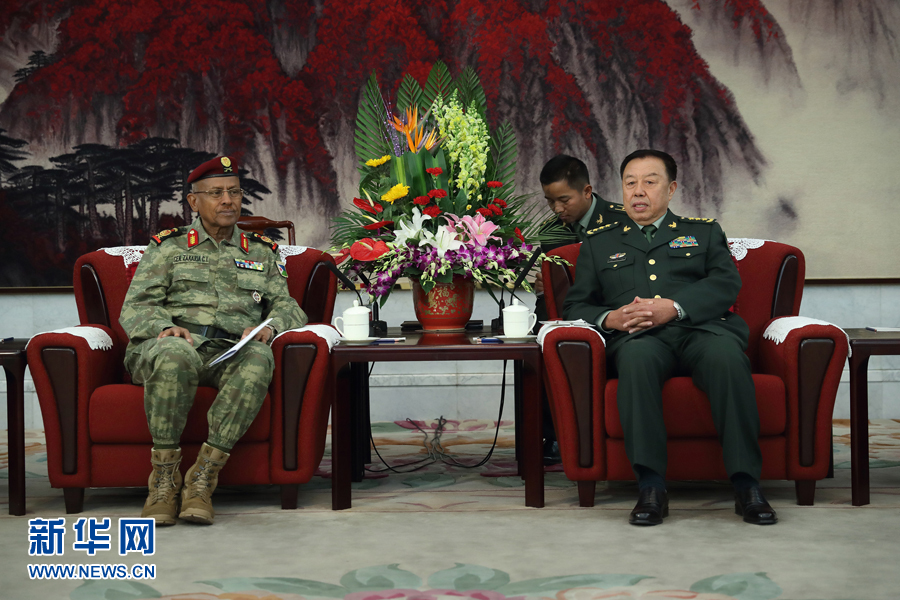 12月5日,中央軍委副主席范長龍?jiān)诒本┌艘淮髽菚?huì)見來訪的吉布提軍隊(duì)總參謀長扎卡里亞。 新華社記者 琚振華 攝