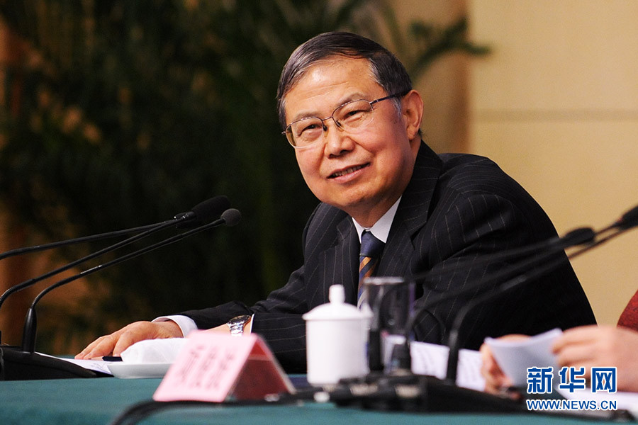 3月12日,十二屆全國人大四次會議在梅地亞中心多功能廳舉行記者會,邀請中國銀行業(yè)監(jiān)督管理委員會主席尚福林、中國證券監(jiān)督管理委員會主席劉士余、中國保險監(jiān)督管理委員會主席項俊波回答中外記者的提問。圖為十二屆全國人大四次會議新聞中心副主任、主持人祝壽臣。新華網(wǎng)/中國政府網(wǎng) 陳杰 攝