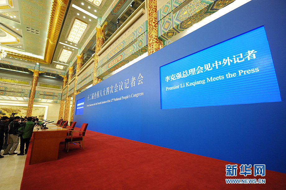 3月16日上午,國(guó)務(wù)院總理李克強(qiáng)在人民大會(huì)堂三樓金色大廳會(huì)見采訪十二屆全國(guó)人大四次會(huì)議的中外記者并回答記者提出的問題。圖為記者會(huì)現(xiàn)場(chǎng)。新華網(wǎng)/中國(guó)政府網(wǎng) 陳競(jìng)超 攝