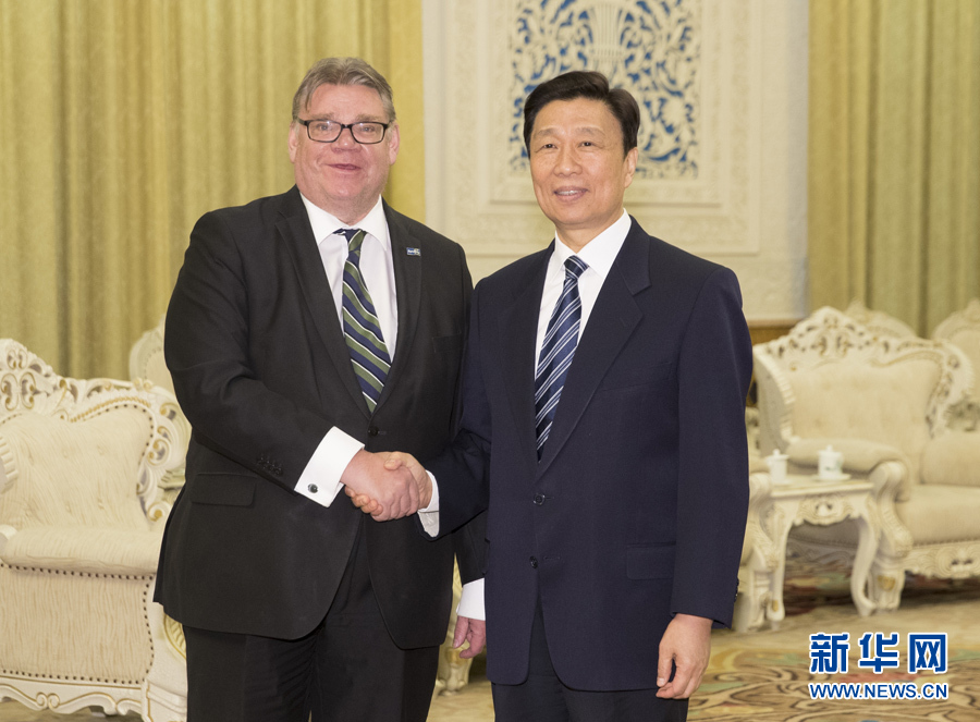 2月28日,中國(guó)國(guó)家副主席李源潮在北京會(huì)見(jiàn)芬蘭外交部長(zhǎng)索伊尼。新華社記者丁林?jǐn)z