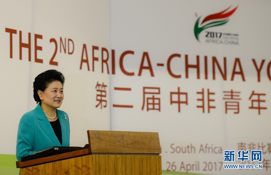 4月26日,中國國務(wù)院副總理劉延?xùn)|在南非比勒陀利亞出席第二屆中非青年大聯(lián)歡閉幕大會(huì)并致辭。 新華社記者 翟健嵐 攝