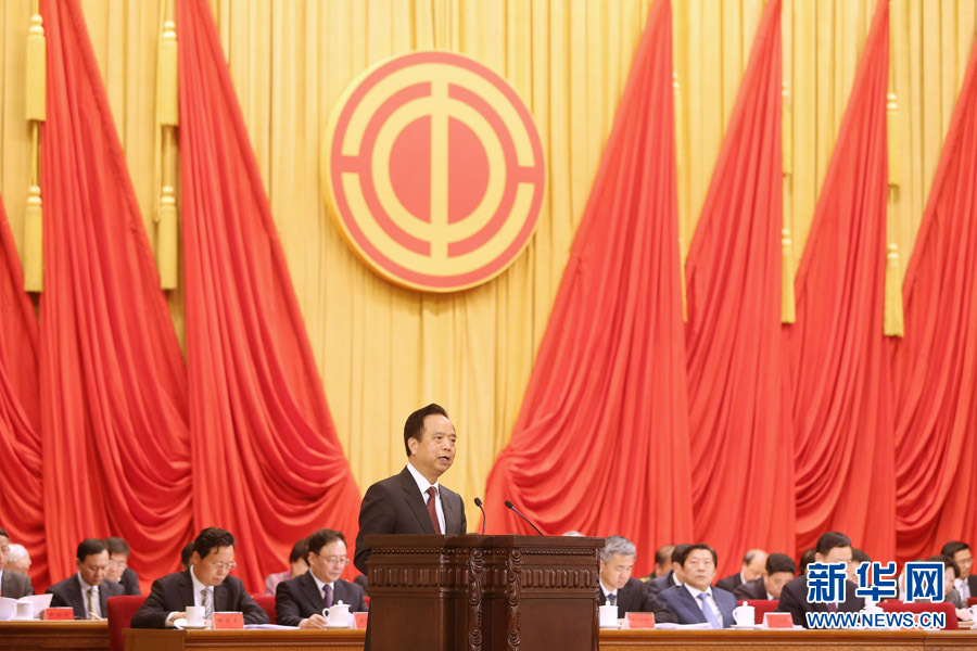 4月27日,慶祝“五一”國(guó)際勞動(dòng)節(jié)暨全國(guó)五一勞動(dòng)獎(jiǎng)和全國(guó)工人先鋒號(hào)表彰大會(huì)在北京人民大會(huì)堂舉行。中共中央政治局委員、中華全國(guó)總工會(huì)主席李建國(guó)出席大會(huì)并講話。新華社記者 才揚(yáng) 攝