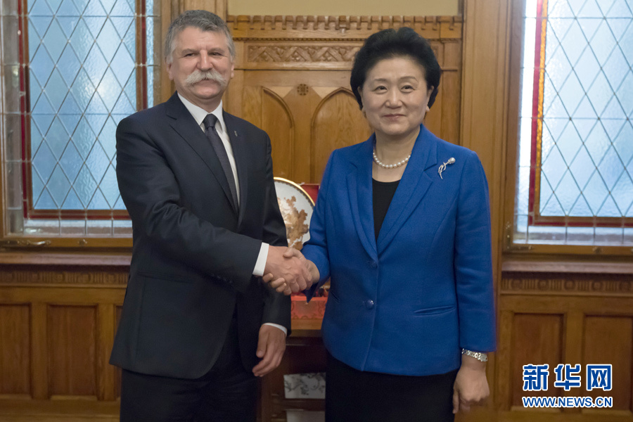 6月19日,在匈牙利布達(dá)佩斯,中國(guó)國(guó)務(wù)院副總理劉延?xùn)|(右)會(huì)見匈牙利國(guó)會(huì)主席克韋爾。? 新華社發(fā)(弗爾季·奧蒂洛攝)