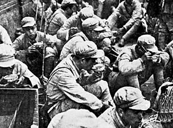 當時明文規(guī)定:進入市區(qū)的,只限指揮機關(guān)和戰(zhàn)斗部隊,后方輜重、騾馬一律不得進入市區(qū)。這樣,炊事員在郊外燒好了飯,甚至要走上二三十里路,才能送到戰(zhàn)士手里。路途遠,加上天下雨,有時一天只能走一個來回,戰(zhàn)士也就只能一天吃一餐。