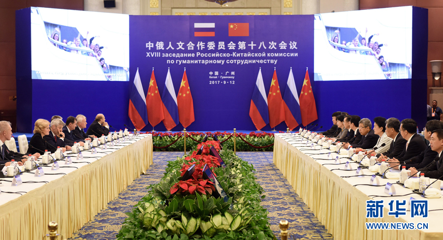 9月12日,中國國務(wù)院副總理、中俄人文合作委員會中方主席劉延東在廣州與俄羅斯副總理、委員會俄方主席戈洛杰茨共同主持召開中俄人文合作委員會第十八次會議。新華社記者 盧漢欣 攝
