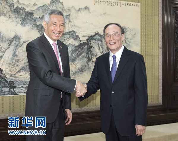 9月20日,中共中央政治局常委、中央紀(jì)委書記王岐山在北京會(huì)見新加坡總理李顯龍。 新華社記者 李濤 攝