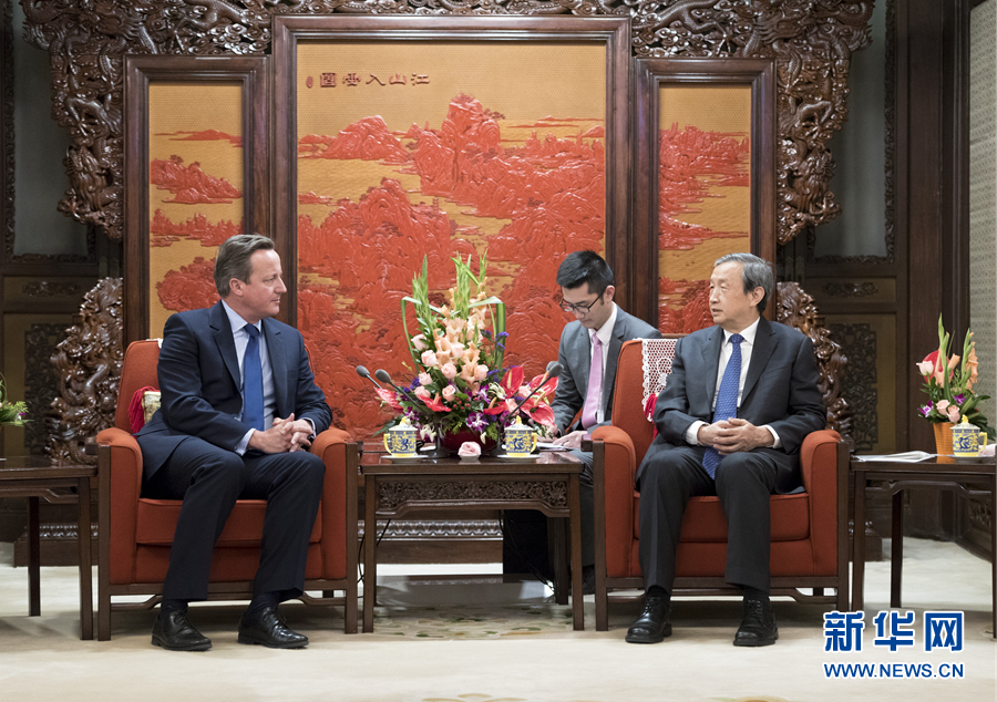 9月20日,國務(wù)院副總理馬凱在北京中南海紫光閣會見來訪的英國前首相卡梅倫。 新華社記者 丁海濤 攝