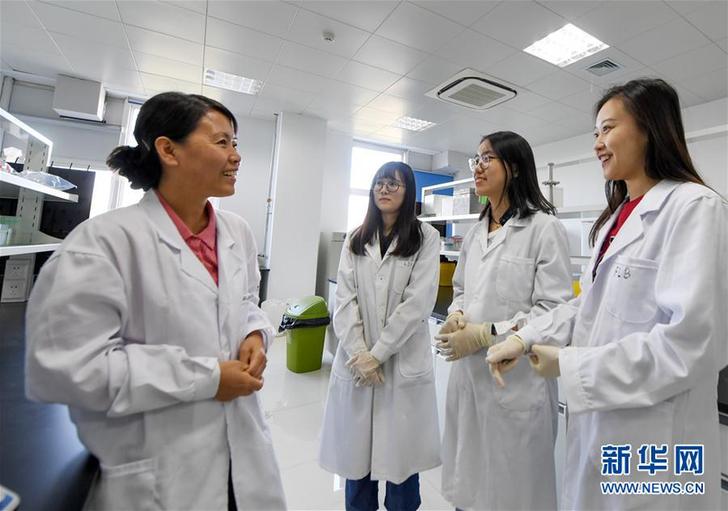 9月28日,在天津大學(xué)藥學(xué)院,馮翠玲(左一)和學(xué)生在實(shí)驗(yàn)室里交流。新華社記者白禹攝