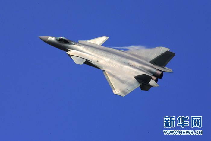 在廣東珠海參加第十一屆中國航展的殲-20飛機進行飛行展示(2016年11月1日攝)。新華社記者 李剛 攝