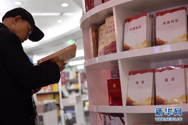 11月6日,老黨員衛(wèi)東在北京圖書大廈的七部重點專題片音像制品和圖書專架前挑選音像制品。為深入學習宣傳貫徹黨的十九大精神,幫助廣大黨員干部群眾深刻認識十八大以來在以習近平同志為核心的黨中央帶領下,黨和國家事業(yè)取得的歷史性成就和發(fā)生的歷史性變革,中央宣傳部、國家新聞出版廣電總局組織出版了《將改革進行到底》《法治中國》《巡視利劍》《大國外交》《輝煌中國》《強軍》《不忘初心繼續(xù)前進》七部重點電視專題片的音像制品和同名圖書,作為學習宣傳貫徹黨的十九大精神的重要輔助和參考資料。新華社記者 金良快 攝
