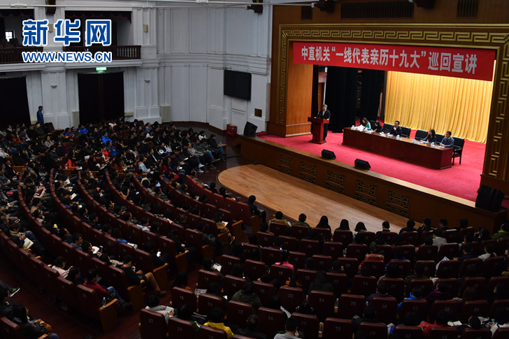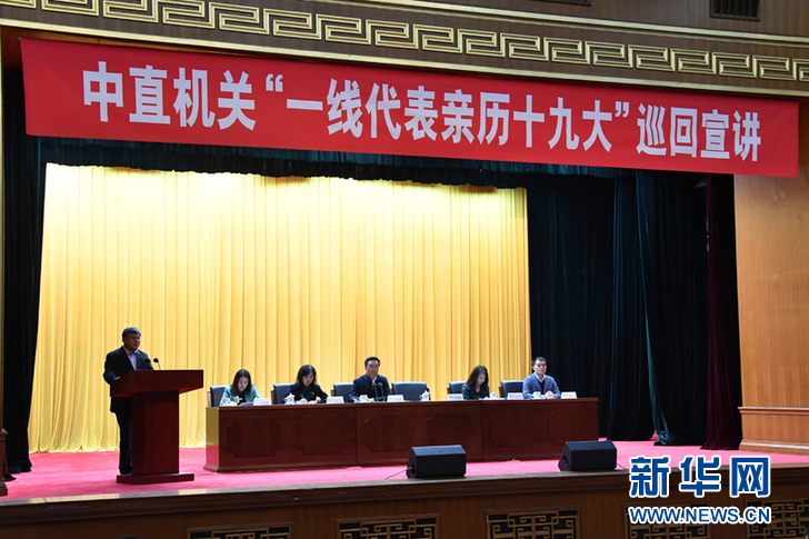 中直機(jī)關(guān)“一線代表親歷十九大”巡回宣講第三場報(bào)告會現(xiàn)場。新華社記者 徐速繪 攝