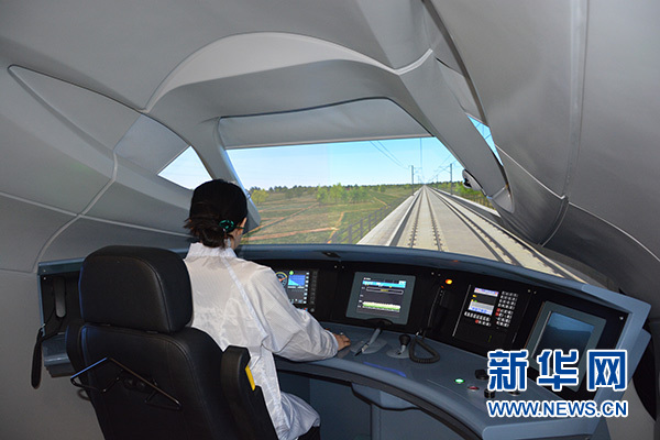 在中國(guó)通號(hào)CTCS-3實(shí)驗(yàn)室體驗(yàn)高鐵貼地“飛行”。據(jù)工作人員介紹,該實(shí)驗(yàn)室采用半實(shí)物仿真建模方法,通過(guò)上萬(wàn)公里高鐵工程的現(xiàn)場(chǎng)驗(yàn)證,仿真平臺(tái)的可信度達(dá)到國(guó)際一流。新華網(wǎng)陳淑君攝