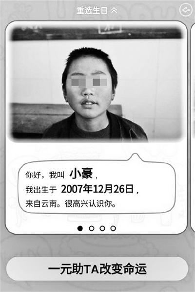 然而,很快有網友“曬”出了這個活動的疑點:在5月5日出生的受助人顯示為“阿豪,出生于2007年”,同一張照片也在12月26日的受助人一欄中出現(xiàn),姓名變成了“小豪”。