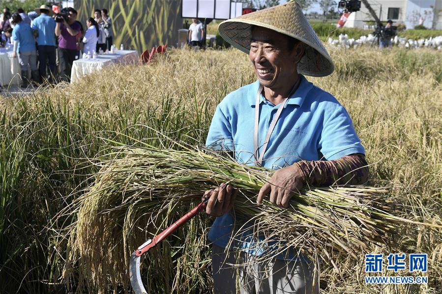 9月28日,由中國工程院院士、“雜交水稻之父”袁隆平領銜的技術團隊培育出的最新一批“海水稻”實地測產,最高畝產達到620.95公斤,我國在“海水稻”研發(fā)領域取得了重大突破。(新華社記者 郭緒雷 攝)