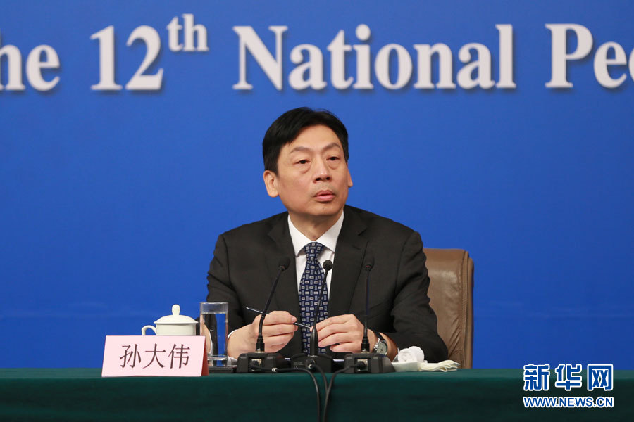 3月14日,十二屆全國(guó)人大五次會(huì)議新聞中心舉行記者會(huì),邀請(qǐng)國(guó)家質(zhì)檢總局局長(zhǎng)支樹平、副局長(zhǎng)兼國(guó)家認(rèn)證認(rèn)可監(jiān)督管理委員會(huì)主任孫大偉、國(guó)家標(biāo)準(zhǔn)化管理委員會(huì)主任田世宏就“質(zhì)量提升”的相關(guān)問題回答中外記者的提問。圖為國(guó)家質(zhì)檢總局副局長(zhǎng)兼國(guó)家認(rèn)證認(rèn)可監(jiān)督管理委員會(huì)主任孫大偉。新華網(wǎng)/中國(guó)政府網(wǎng) 傅義洲 攝