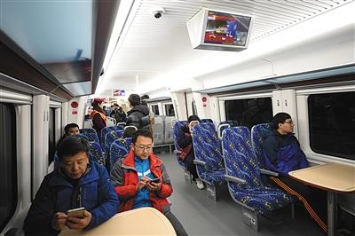 5分鐘后列車發(fā)車,有不少人開始拿出手機上網,“京通號”動車組內也有供乘客免費連接的WiFi,只需加入名為BJSJTL-WiFi的網絡,注冊過程不超1分鐘。