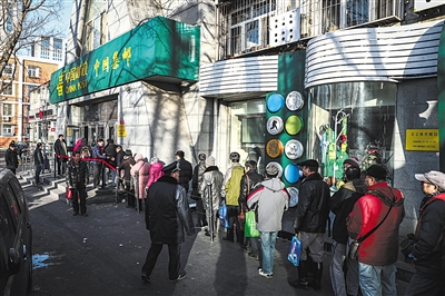 中國郵政工體北路郵政支局門口,市民排隊購買郵票。