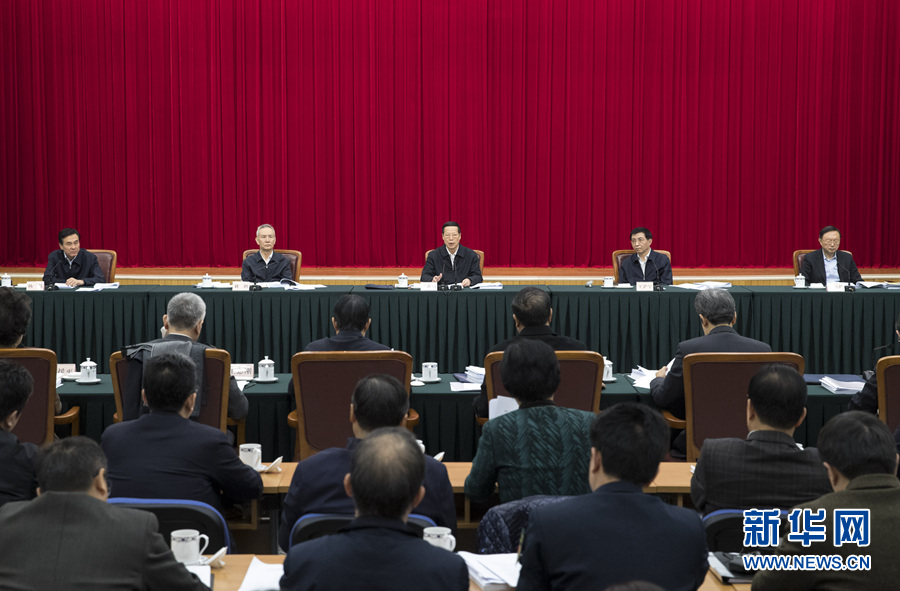 1月16日,推進(jìn)“一帶一路”建設(shè)工作會(huì)議在北京召開(kāi)。國(guó)務(wù)院副總理張高麗主持會(huì)議并講話。中共中央政治局常委、中央書(shū)記處書(shū)記王滬寧出席會(huì)議。新華社記者 王曄 攝