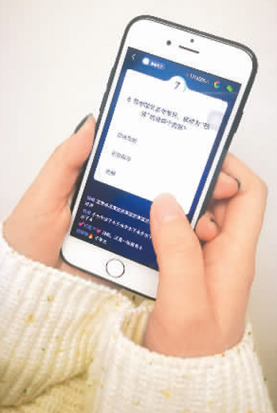 “人民日報海外版?zhèn)b客島的作者一般自稱為島叔和什么?”“當然是島妹??!”伴隨著手機屏幕上緊張的10秒倒計時,武漢的蔡家欣迅速地點擊了正確答案。她的微信群里,一起答題的小伙伴們都在一邊緊張地答題,一邊熱烈地討論著。