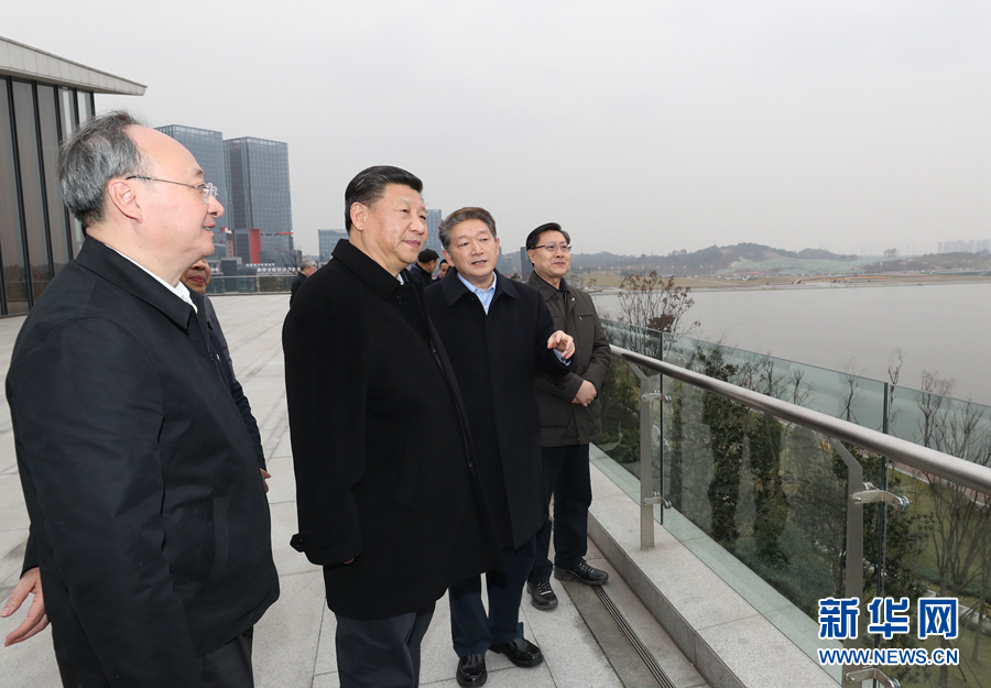 當天下午,習近平從西昌前往成都。一下飛機,便來到天府新區(qū)考察。天府新區(qū)于2014年10月獲批為國家級新區(qū)。習近平結(jié)合視頻、沙盤、展板,詳細了解興隆湖生態(tài)治理成果、沿湖產(chǎn)業(yè)規(guī)劃布局、中國(四川)自由貿(mào)易試驗區(qū)建設情況。他指出,天府新區(qū)是“一帶一路”建設和長江經(jīng)濟帶發(fā)展的重要節(jié)點,一定要規(guī)劃好建設好,特別是要突出公園城市特點,把生態(tài)價值考慮進去,努力打造新的增長極,建設內(nèi)陸開放經(jīng)濟高地。