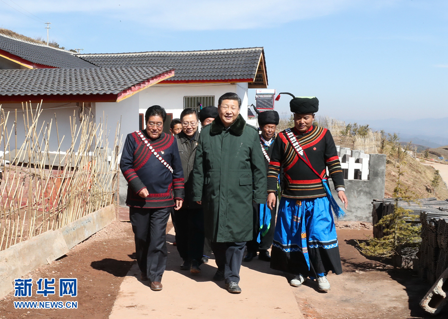 這是2月11日上午,習近平在涼山彝族自治州昭覺縣解放鄉(xiāng)火普村了解易地扶貧搬遷和彝家新寨建設(shè)情況。 新華社記者 鞠鵬 攝