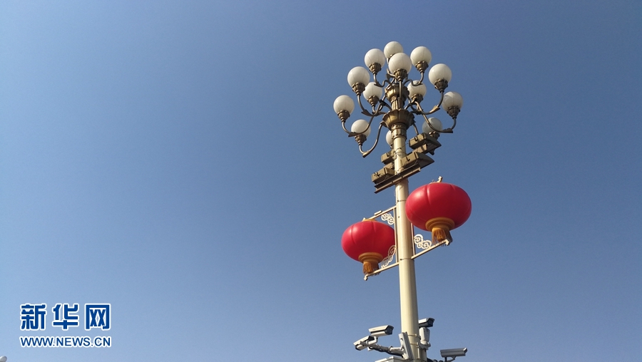 2018年2月15日,天安門廣場外的燈柱用紅燈籠裝飾一新,喜迎農(nóng)歷新年。紅色代表著喜慶、熱鬧、祥和,是中國人最為崇尚的吉祥之色。新年來臨,中國紅無處不在,到處都洋溢著喜氣洋洋的節(jié)日氣氛。新華網(wǎng) 張明宇攝
