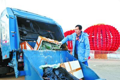 一天完成兩趟垃圾收運,李國棟原本該下班了??伤虝盒菹⒑?,又招呼班組的司機檢查車輛,準備出車。原來,這個春節(jié)他們加了一個班——負責收運龍?zhí)稄R會的垃圾。