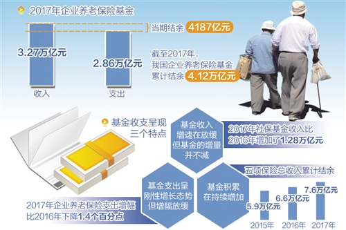 如何看待當(dāng)前我國社?;鸬氖罩毫??游鈞表示,隨著我國進(jìn)入經(jīng)濟(jì)新常態(tài),特別是人口老齡化的加速推進(jìn),我國的社會保險,特別是養(yǎng)老保險也進(jìn)入了一個新的發(fā)展時期,基金收支呈現(xiàn)新特點:一方面,雖然基金收入增速在放緩,但是基金增量不減;另一方面,雖然基金支出呈剛性增長態(tài)勢,但是增幅在放緩;此外,基金積累也在持續(xù)增加。數(shù)據(jù)顯示,2015年,我國五項社?;鹄塾嫿Y(jié)余為5.9萬億元,2016年達(dá)到6.6萬億元,2017年達(dá)到7.6萬億元。