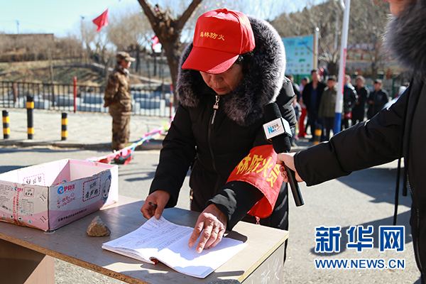 一位游客表示:“大冷天的寫字是有點凍手,但是我們非常愿意配合護林員工作。都放假了,護林員還在值班,給他們點贊。”