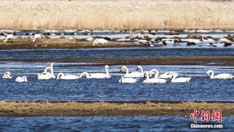 3月20日,天鵝在湖面上棲息。日前,內(nèi)蒙古自治區(qū)呼倫貝爾市陳巴爾虎旗陸續(xù)迎來大量北歸天鵝。據(jù)了解,每年四月份,成群的天鵝從中國南方遷徙到呼倫貝爾產(chǎn)卵繁殖,而今年三月中旬起,陳巴爾虎旗境內(nèi)便迎來大量回歸天鵝,實屬罕見。中新社記者 武軍 攝