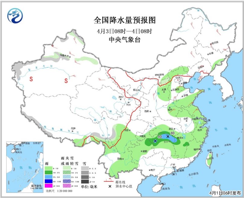 另外,4月1日,新疆北部有雨雪天氣,沿天山高海拔地區(qū)局地有大到暴雪,2日起降雪減弱。
