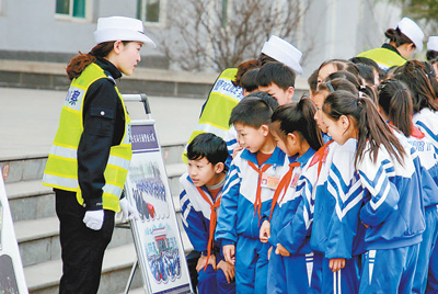 山西翼城縣交警走進轄區(qū)匯豐學校宣講交通安全知識,幫助孩子們養(yǎng)成文明出行的良好習慣。劉偉 攝(人民視覺)
