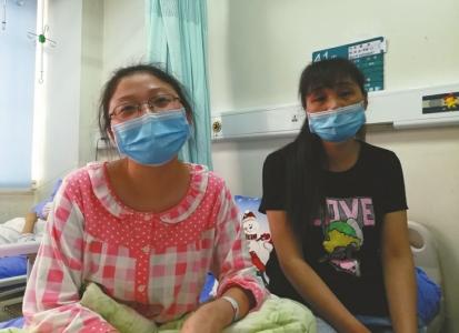 為防止肺部感染,術(shù)后的戴蕊和媽媽都戴著口罩。圖片來(lái)源:華西都市報(bào)