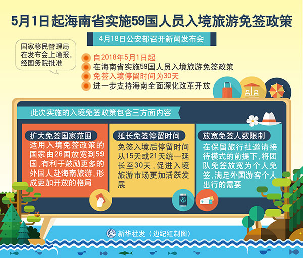 新華社北京4月18日電 題:“擴大范圍、延長時間、放寬人數(shù)”——海南省實施59國人員入境旅游免簽政策解讀