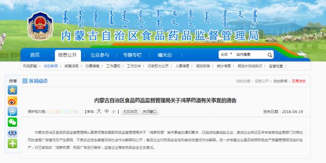 內(nèi)蒙古自治區(qū)食品藥品監(jiān)督管理局認(rèn)真貫徹落實(shí)國(guó)家藥品監(jiān)督管理局關(guān)于“鴻茅藥酒”有關(guān)事宜的通知要求,已組成檢查組赴企業(yè),責(zé)成企業(yè)將近五年來(lái)被各地監(jiān)管部門(mén)對(duì)其處罰的虛假?gòu)V告情況及產(chǎn)生原因、不良反應(yīng)發(fā)生等情況向社會(huì)作出解釋和公開(kāi);督促企業(yè)對(duì)藥品安全性和有效性情況作出解釋。進(jìn)一步核查企業(yè)是否按照藥品生產(chǎn)質(zhì)量管理規(guī)范組織生產(chǎn);對(duì)已審批的“鴻茅藥酒”藥品廣告進(jìn)行復(fù)核;監(jiān)督企業(yè)落實(shí)藥品安全主體責(zé)任。