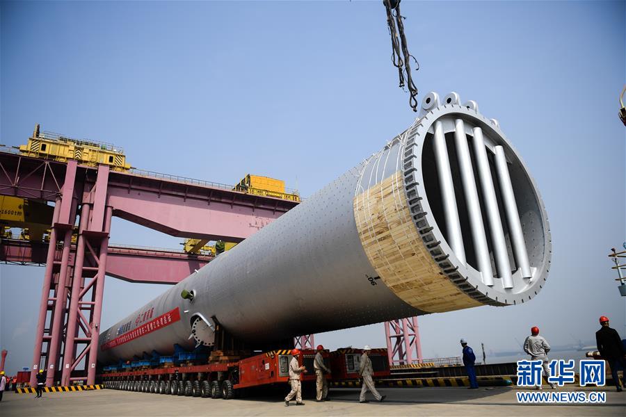 4月28日,江蘇鎮(zhèn)江,工人在給260萬(wàn)噸/年沸騰床渣油鍛焊加氫反應(yīng)器做發(fā)運(yùn)前的準(zhǔn)備工作。新華社記者李響 攝