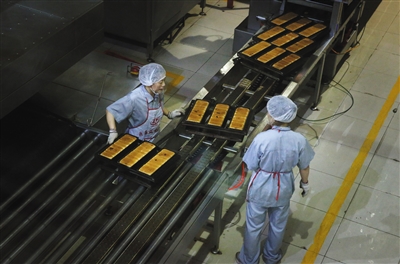 門楣上,暗紅色的招牌上噴著鮮黃的大字——“百年義利”。這個隸屬于北京第一輕工食品集團(tuán)(簡稱“一輕”)的百年老店是一家國有企業(yè),自1951年在北京建廠至今已生存67年。