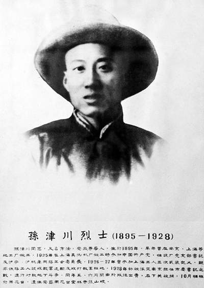 1925年8月經(jīng)彭干臣等介紹,孫津川加入中國(guó)共產(chǎn)黨,并當(dāng)選為滬寧鐵路工人協(xié)進(jìn)會(huì)委員。不久,中共吳淞機(jī)廠特別支部成立,孫津川被選為特支書(shū)記。